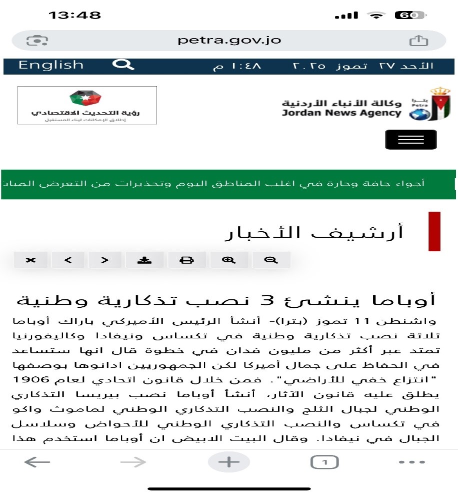 - في الحادي عشر من شهر تموز/ يوليو عام ألفين وخمسة عشر، ورد في موقع gov.jo خبر تحت العنوان الآتي “أوباما ينشئ 3 نصب تذكارية وطنية”. إنّ استخدام كلمة “نُصب” للدّلالة على الجمع يشكّل خطأ صرفيًّا يجب تلافيه. “النُّصْب: (جمع أنْصاب) الشّيء الّذي نُصِبَ، ما يُبنى من حجر تخليدًا لذكرى الشّهداء، التّمثال الّذي يُعبَد[6]“.